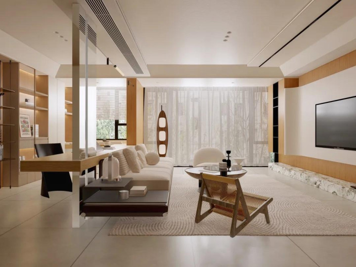 对于客厅面积有限的户型来说,将次卧室与客厅打通后,能有着“大别墅”的即视感。